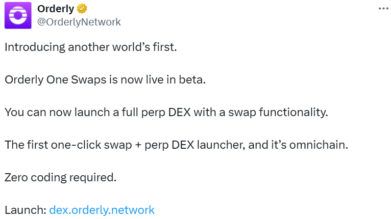 - Orderly One Swaps 已上线测试版