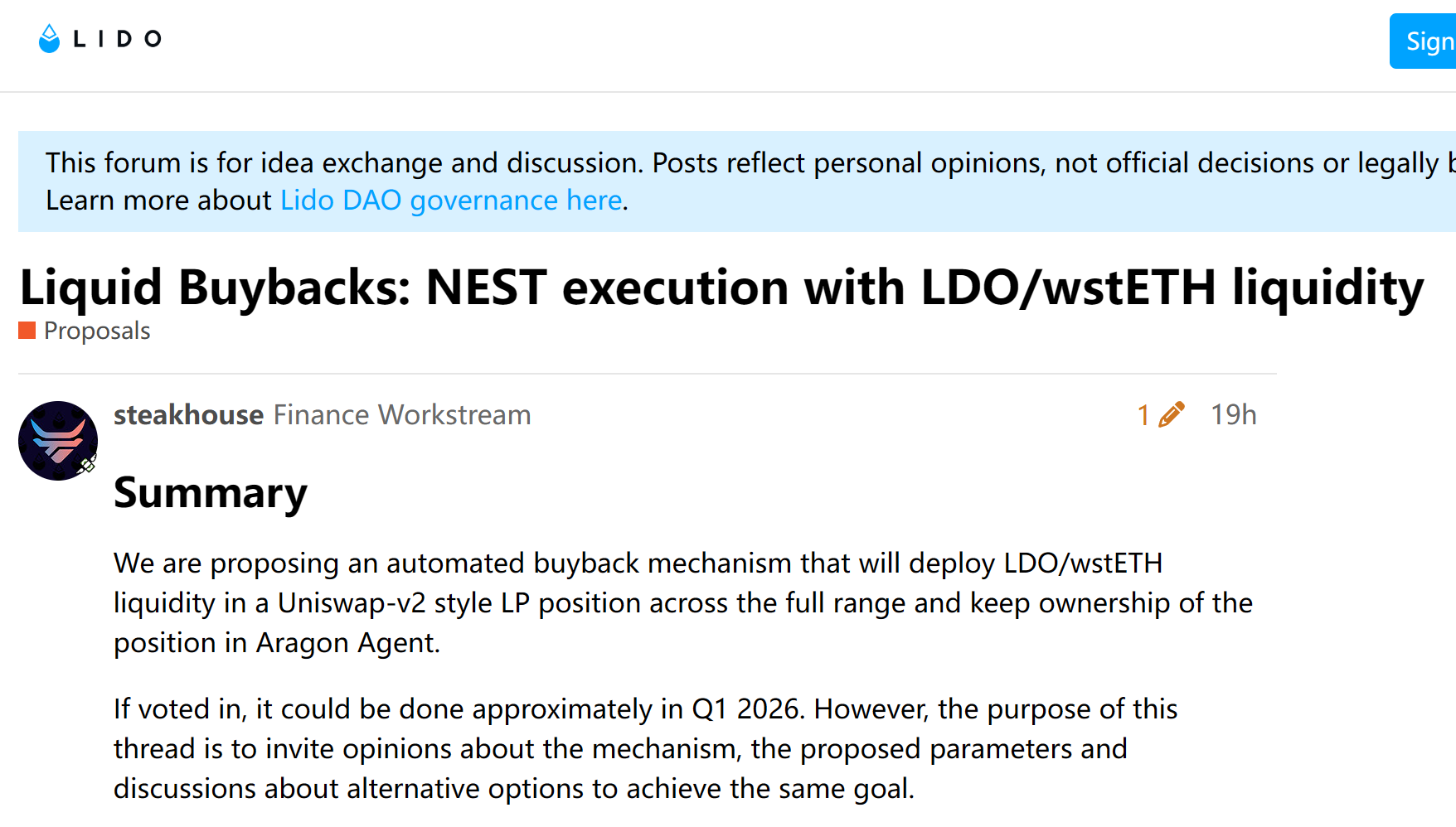 - Lido DAO 社区发起流动性回购提案