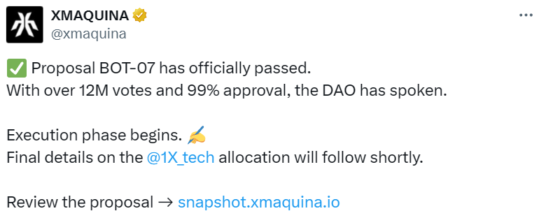 - XMAQUINA BOT-07 提案已获通过