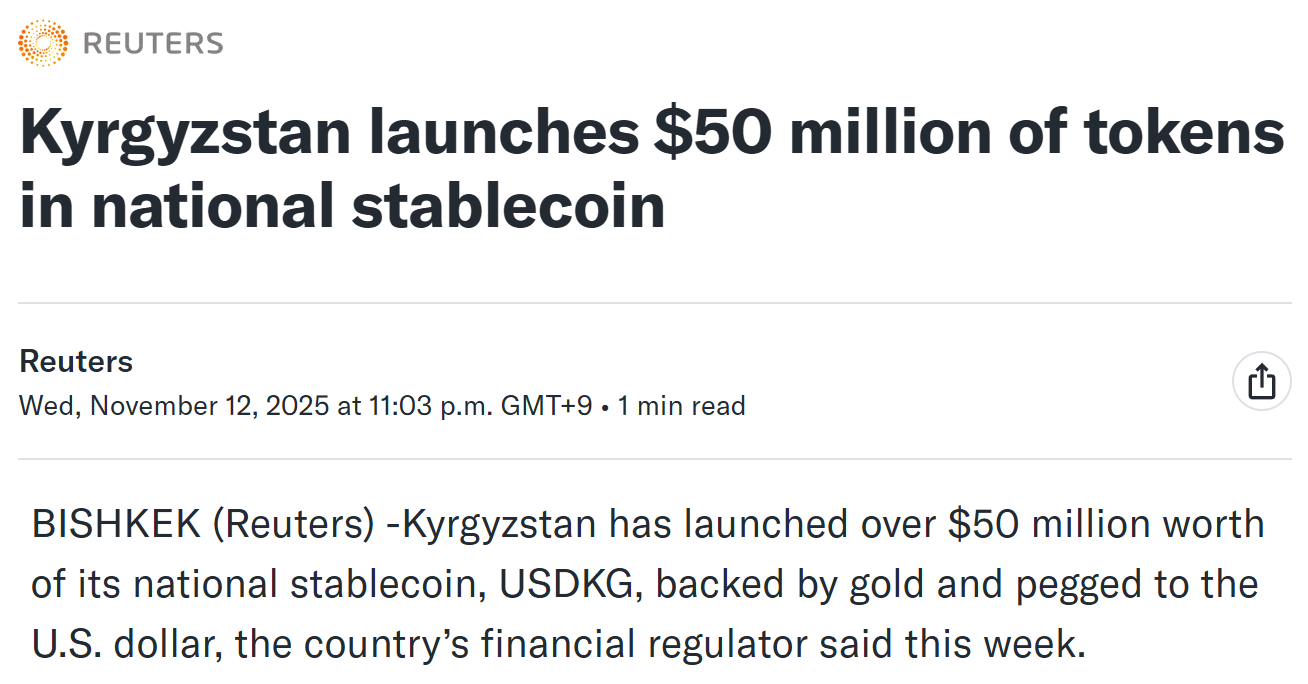 - 吉尔吉斯斯坦发行国家稳定币 USDKG