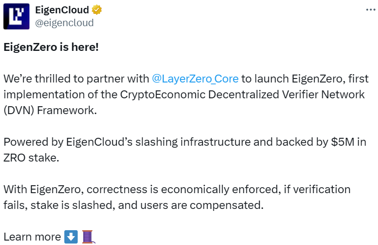 - EigenCloud 与 LayerZero 推出跨链验证网络 EigenZero