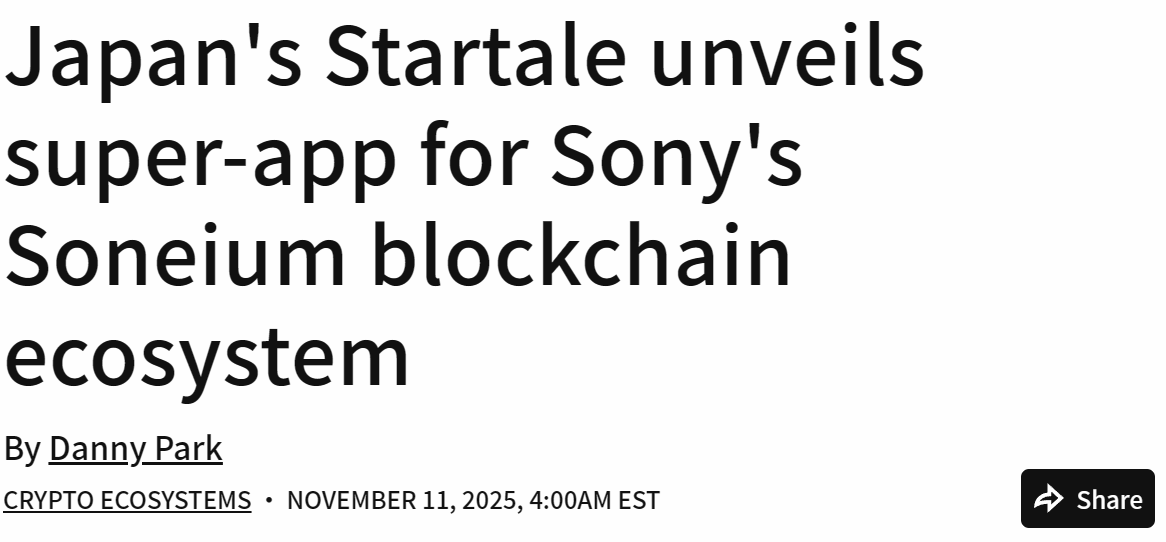- 日本 Startale 公司推出面向索尼 Soneium 区块链生态系统的超级应用