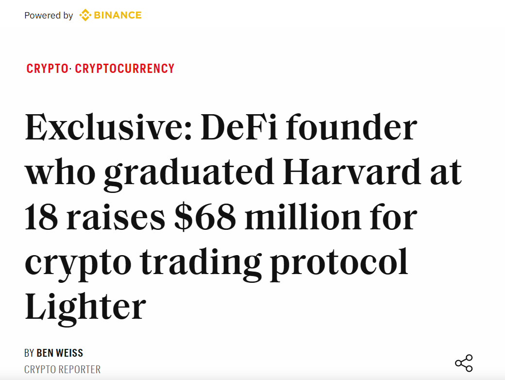 - Lighter 完成 6800 万美元融资,Founders Fund 与 Ribbit Capital 领投