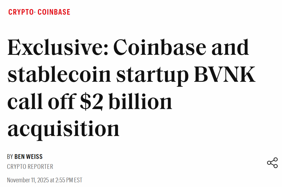 - Coinbase 取消 20 亿美元收购稳定币初创公司 BVNK