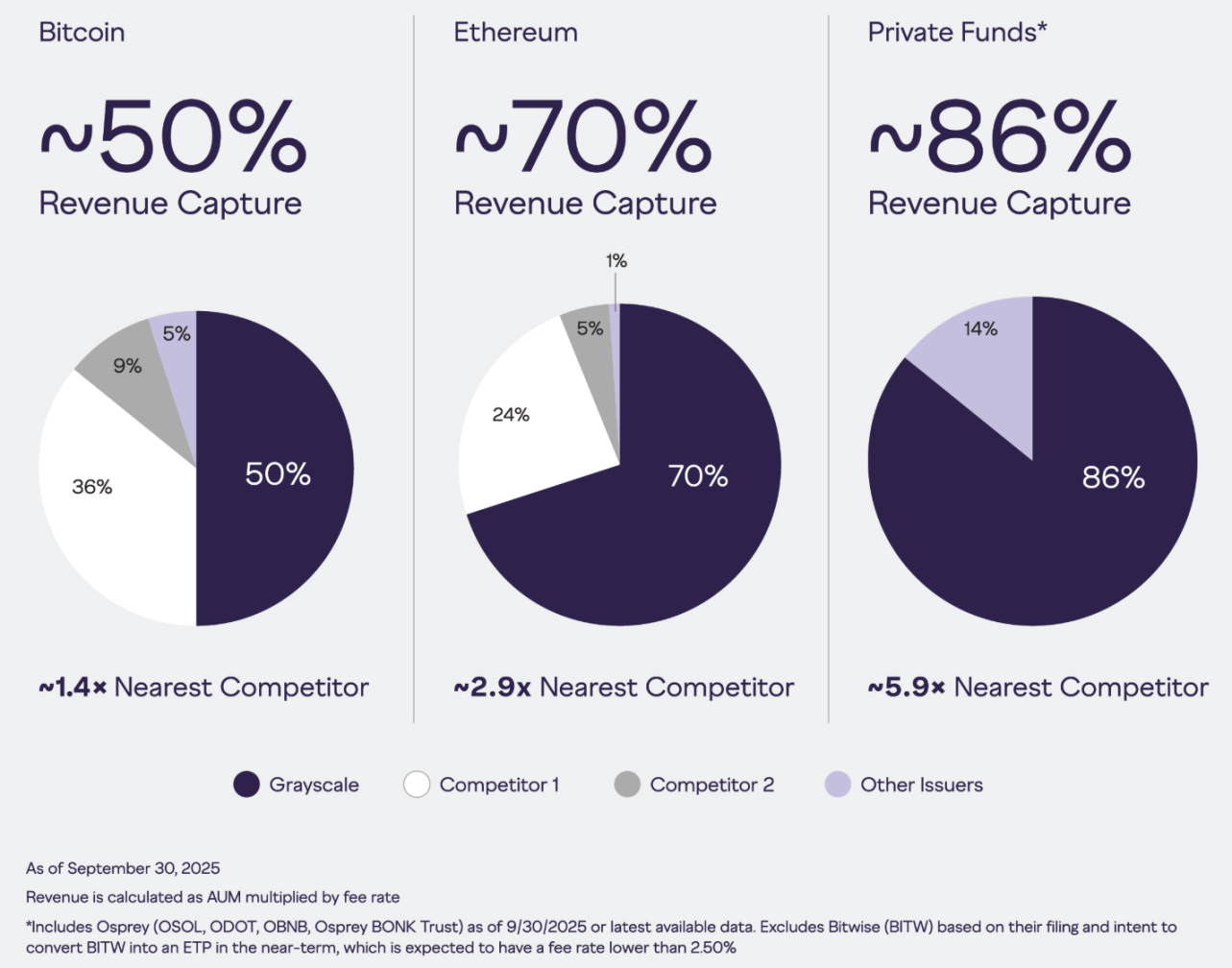 此外,单从收入来看,灰度旗下主要投资产品的收入能力是强于主要竞争者的,但这主要也来源于此前不可赎回信托积累的 AUM 和高于同行平均水平的管理费率。