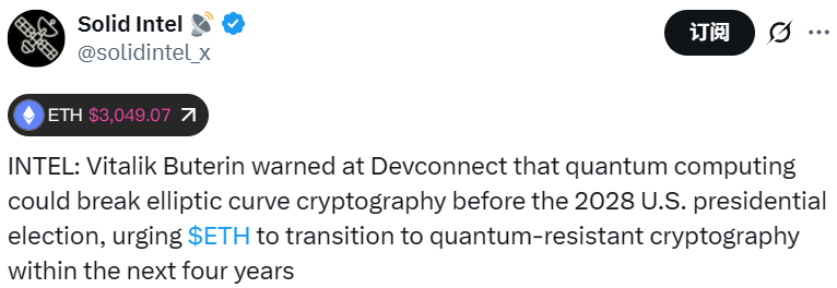 - Vitalik Buterin:量子计算可能在 2028 年前破解椭圆曲线密码学
