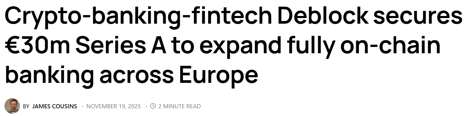 - 加密钱包 Deblock 完成约 3473 万美元 A 轮融资,Speedinvest 领投
