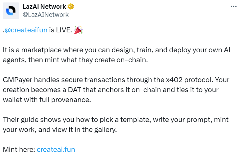 - 融合 x402 支付与 DAT 资产的 AI Agent 市场 CreateAI 上线