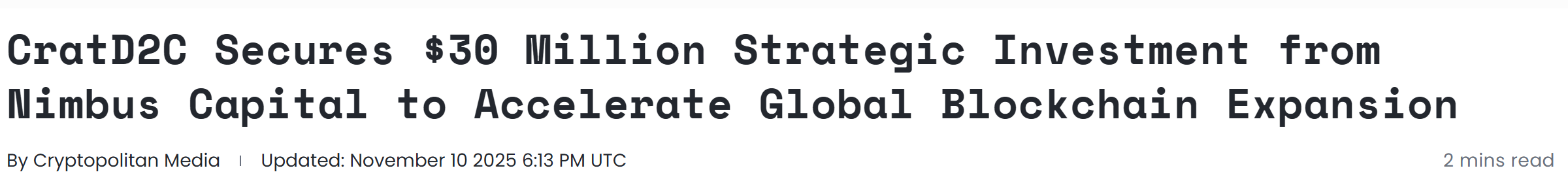 - CratD2C 获 Nimbus Capital 3000 万美元战略投资