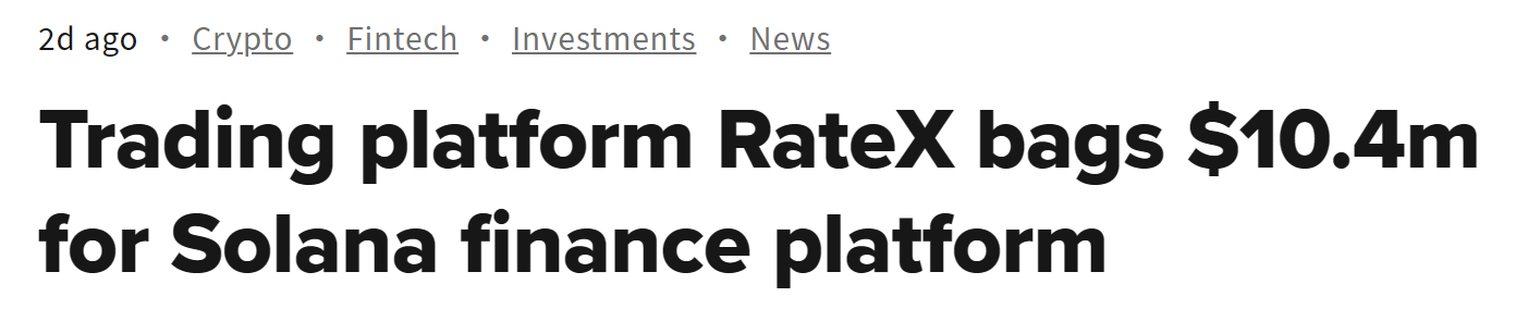 - Solana 生态收益交易协议 RateX 完成 700 万美元新融资