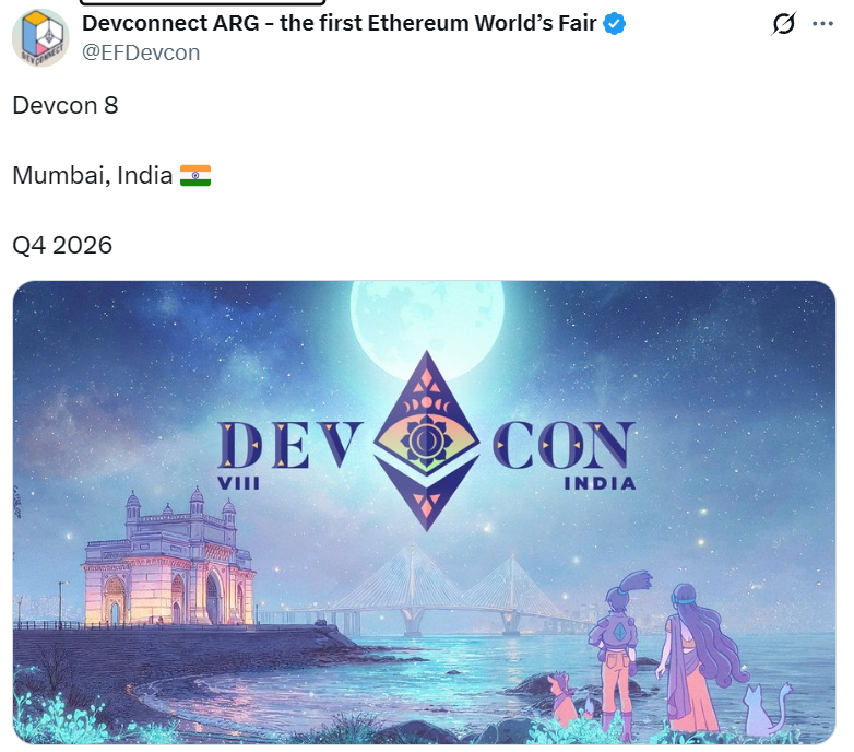 - Devcon 8 将于 2026 年第四季度在印度孟买举办