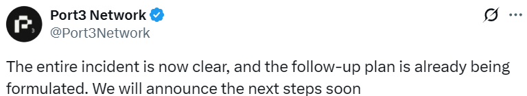 - Port3:黑客事件全貌已查明,将尽快公布后续措施