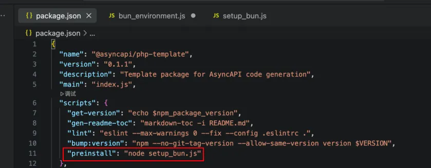 在 package.json 中新增了 preinstall 脚本,使得在依赖安装之前会自动执行 setup_bun.js。