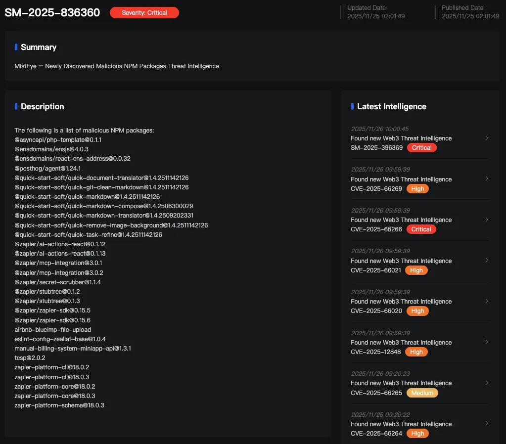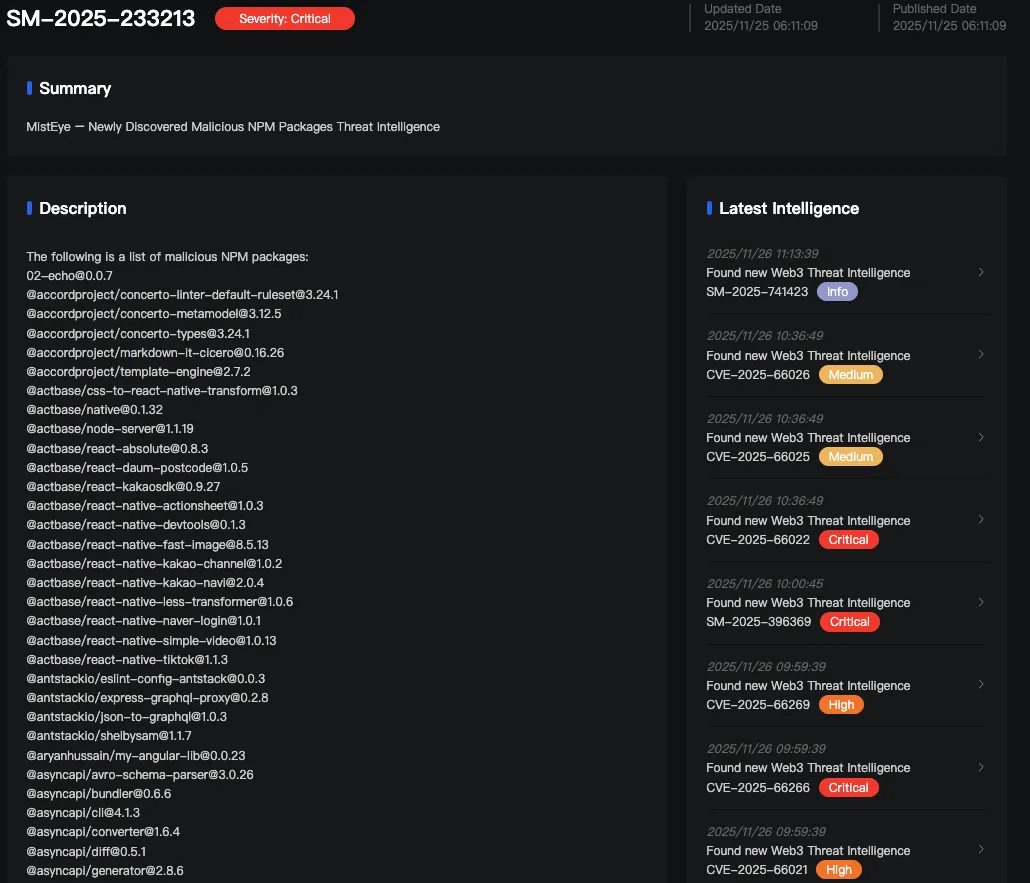 如需获取更多关于 APT 情报、依赖投毒情报等安全信息,您可以联系我们采购 Web3 威胁情报与动态安全监控工具 MistEye,获取最新安全情报,快速识别威胁并及时阻断攻击。