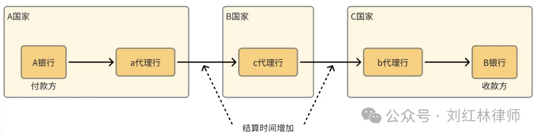 随着需要更多中介银行,结算时间长达数日、费用上涨、追踪挑战以及其他问题也随之浮现。这也导致了在金融基础设施不发达的邻国之间的跨境支付,也需要绕道全球的银行,带来了极大的不便。