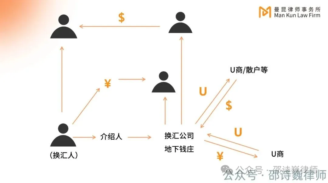 所谓 “新挑战”,在实务中体现为犯罪手段的不断专业化与隐蔽化。邵诗巍律师在论坛中重点剖析了利用虚拟货币进行非法买卖外汇的典型业务链条:以 USDT 为媒介,采用 “境内外对敲” 模式,实现资金跨境转移而无实际资金的物理流动。此类行为隐蔽性强、资金规模大,已成为地下钱庄与洗钱犯罪的主流渠道之一。