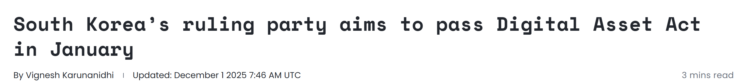 - 韩国执政党计划在明年 1 月份通过《数字资产基本法》