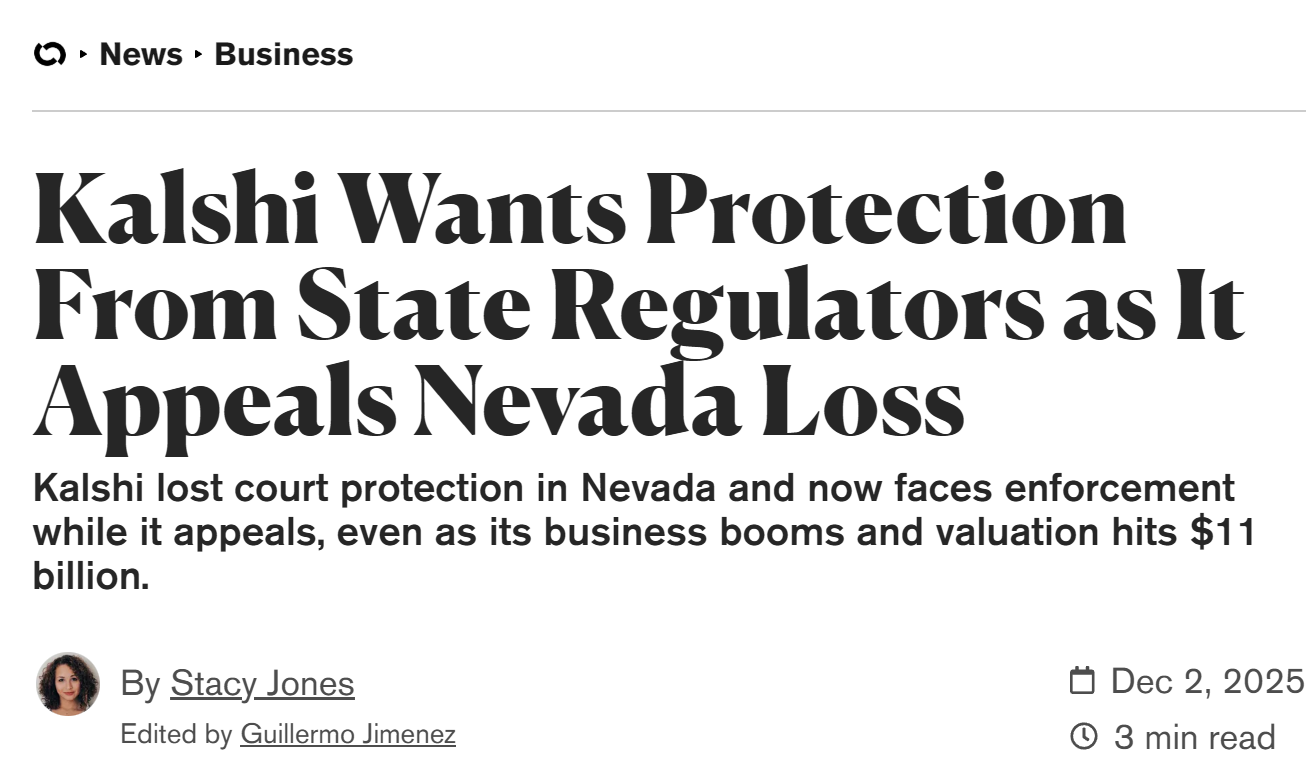 - Kalshi 在内华达失去禁令保护后寻求阻止州监管执法
