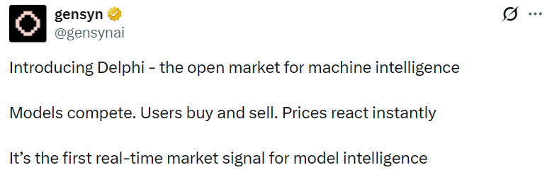 - Gensyn 推出面向机器智能的开放市场 Delphi