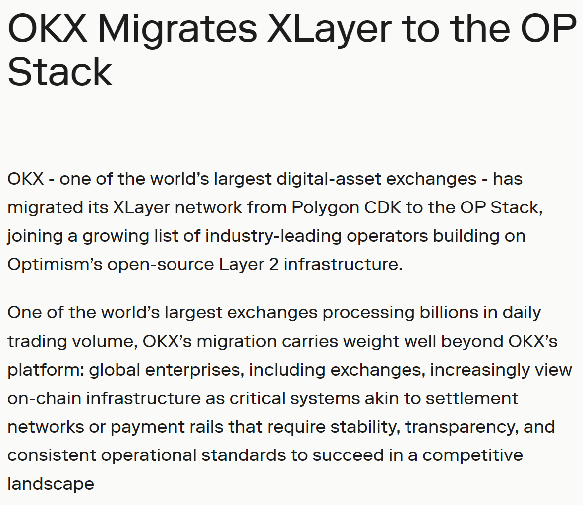 - OKX 已将 X Layer 迁移至 OP Stack