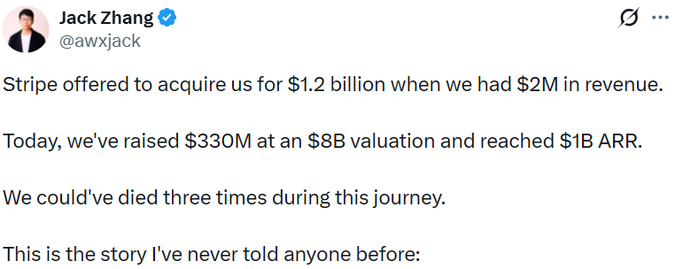 - Airwallex 创始人称曾拒绝 Stripe 12 亿美元收购报价
