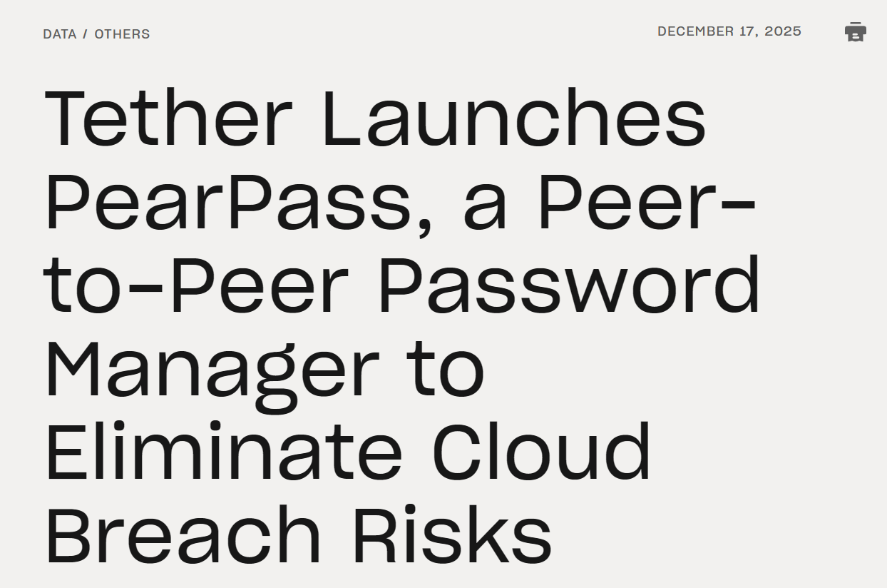 - Tether 推出点对点密码管理器 PearPass