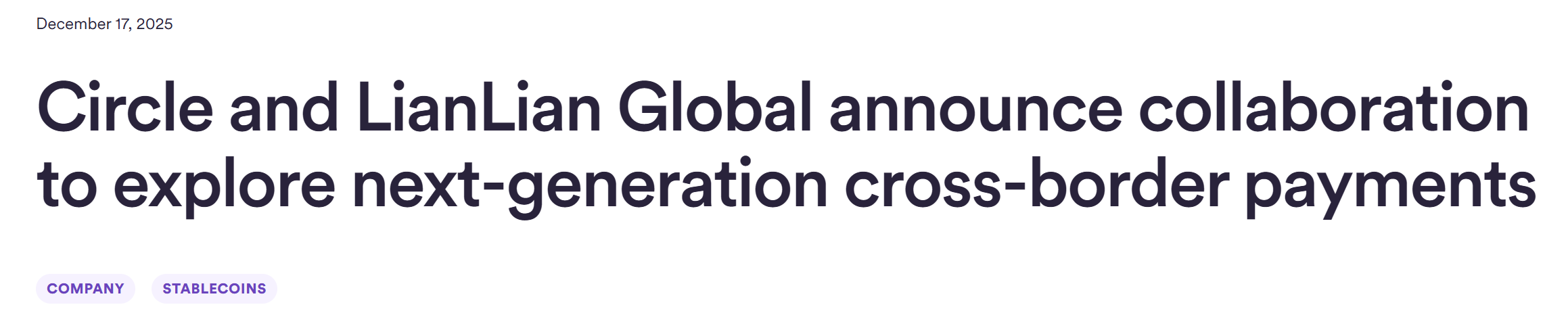 - Circle 和连连数字将探索基于稳定币的支付基础设施领域和合作机会
