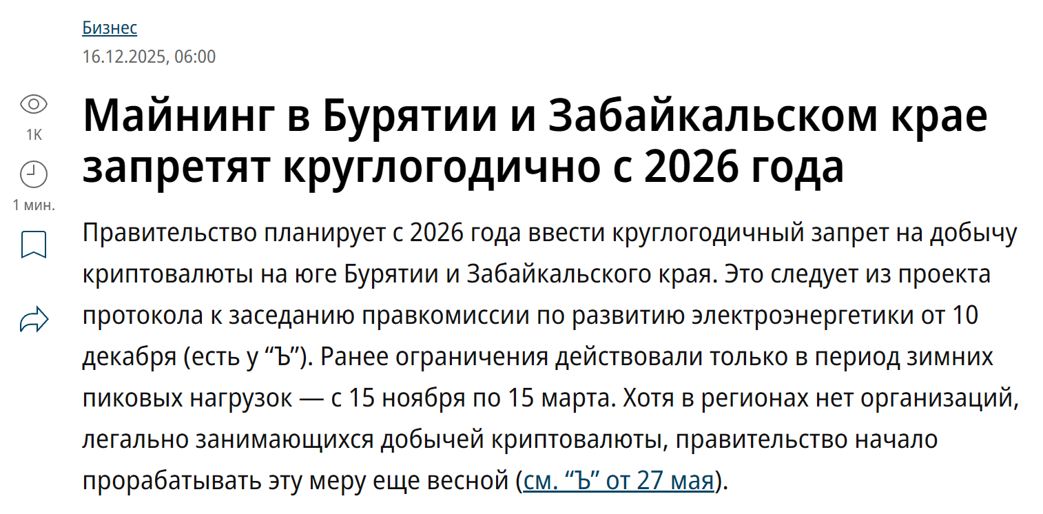 - 俄罗斯将禁止电力短缺区域的比特币挖矿活动