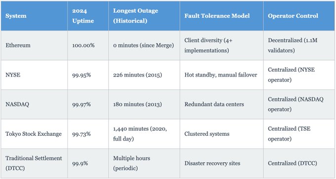 - 可靠性记录:自 2022 年 9 月合并以来,以太坊保持了 100% 的正常运行时间,这一记录可靠性超越了传统金融标准市场。