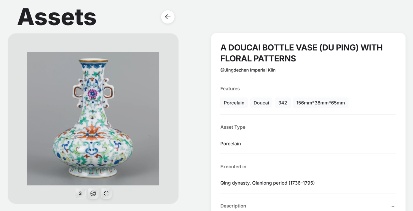 从时间轴看,Ultiland 的落地动作已经形成一条相对清晰的路径。EMQL 发行后,其认购速度明显快于团队的预期,首轮几乎被迅速抢购完毕,显示出用户对 ARToken 这类文化资产存在明确兴趣。这一结果提供了最直接的市场反馈,文化标的在链上具备真实需求,而拆分模式能够有效扩大参与面,使原本的小众藏品进入一个新的价格发现体系。11 月 26 日,乾隆瓶资产移交,移交完成后即将进入二级市场。