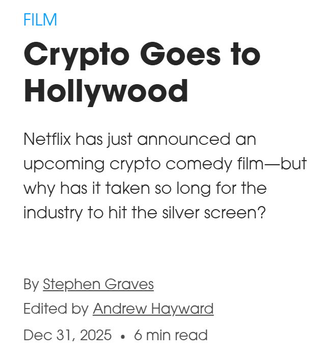 - Netflix 开拍以加密货币为主题的浪漫喜剧电影《One Attempt Remaining》