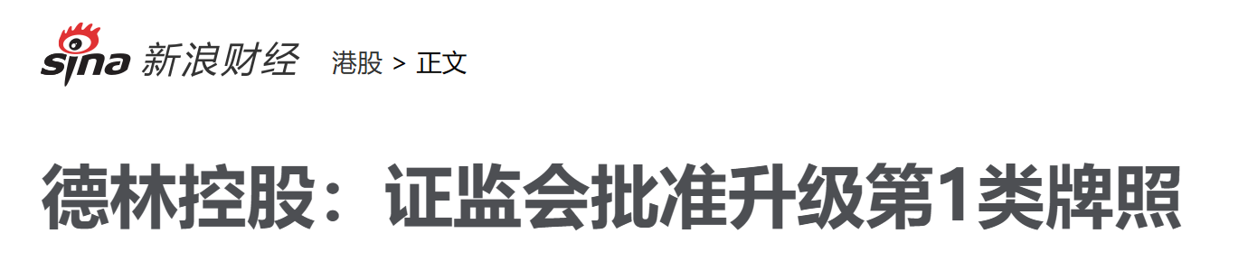 - 德林证券获香港证监会批准升级第 1 类牌照,可提供虚拟资产交易服务