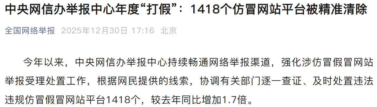 - 网信办 2025 年处置仿冒金融机构网站 61 个,涉诱导网民购买所谓「稳定币」等理财产品