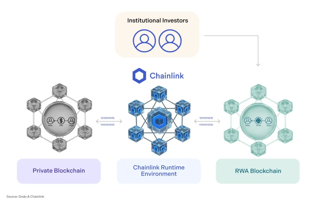 - Chainlink 运行时环境(CRE)已成为机构智能合约的一体化编排层,并已被 Swift、Euroclear、瑞银集团、万事达卡等众多机构采用。今年 5 月,Chainlink 与 Ondo 和摩根大通旗下 Kinexys 合作,在 Ondo Chain 测试网上成功完成了 OUSG 的首次结算。