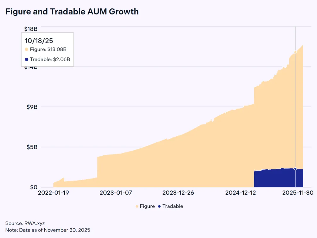 尽管如此,但这种保守的选择适合那些希望尝试区块链技术并探索如何逐步将其集成到现有技术栈中的公司。截至 2025 年 11 月底,Figure 和 Tradable 已将价值 160 亿美元的活跃贷款代币化,约占链上活跃贷款总额的 85.24%。