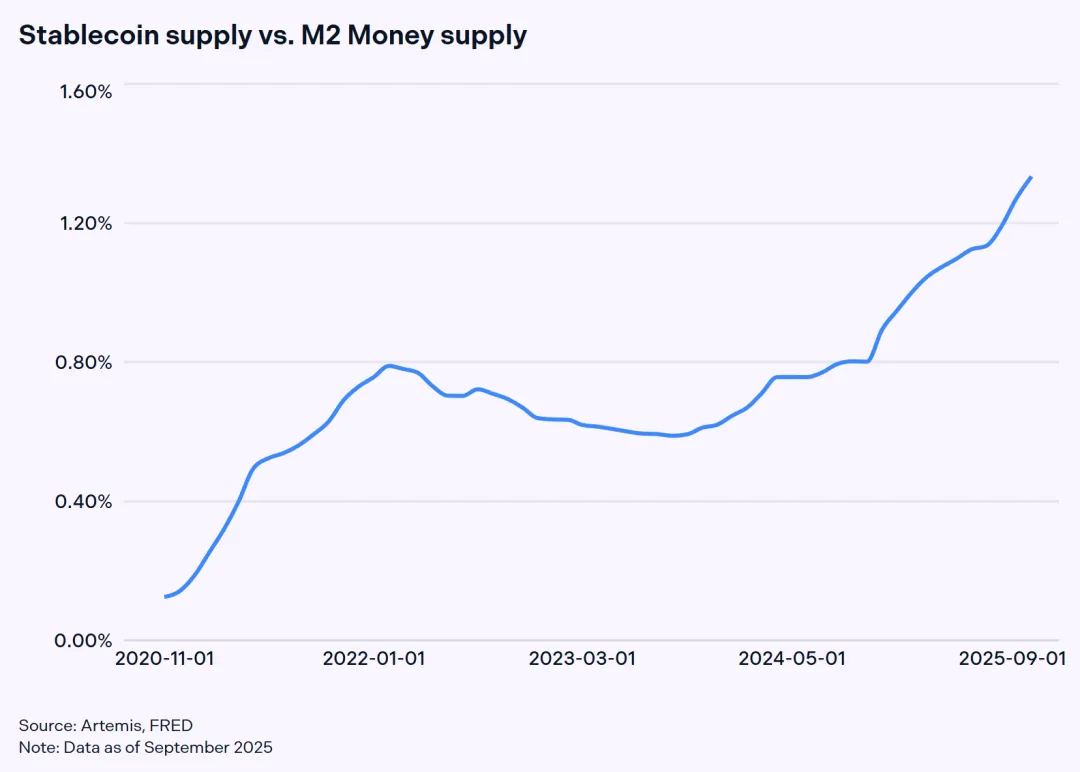 作为参考,稳定币的发展轨迹与之类似:从 2020 年到 2025 年,其在美国 M2 货币供应量中的占比从 0.15% 跃升至 1.11%,短短五年内增长了近 70 倍。如果 RWA 也以类似的轨迹增长,未来十年可能会出现前所未有的链上资本迁移。事实上,麦肯锡预测,到 2030 年,代币化总价值将达到 1.9 万亿美元,比目前水平增长超过 60 倍。