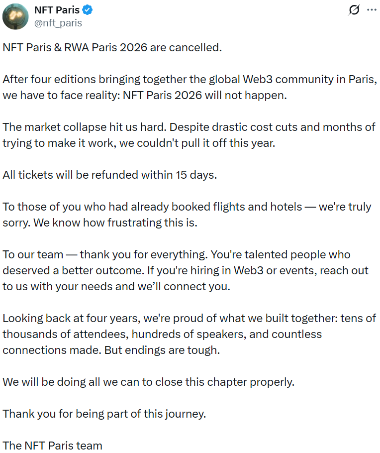 - NFT Paris & RWA Paris 2026 大会正式取消