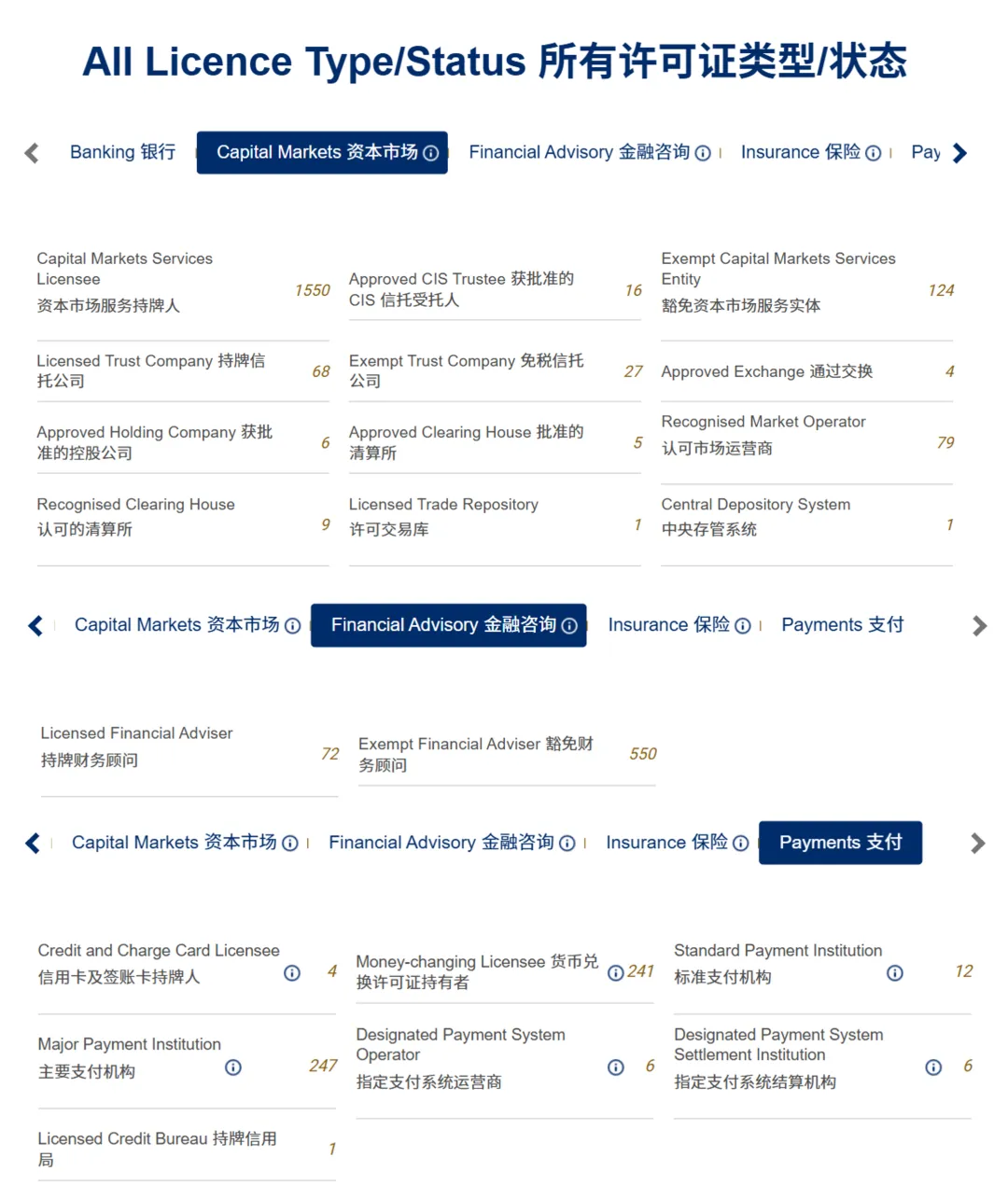 新加坡的许可证类型依业务领域划分,涉及到加密货币业务的大致可以涉及下几类: