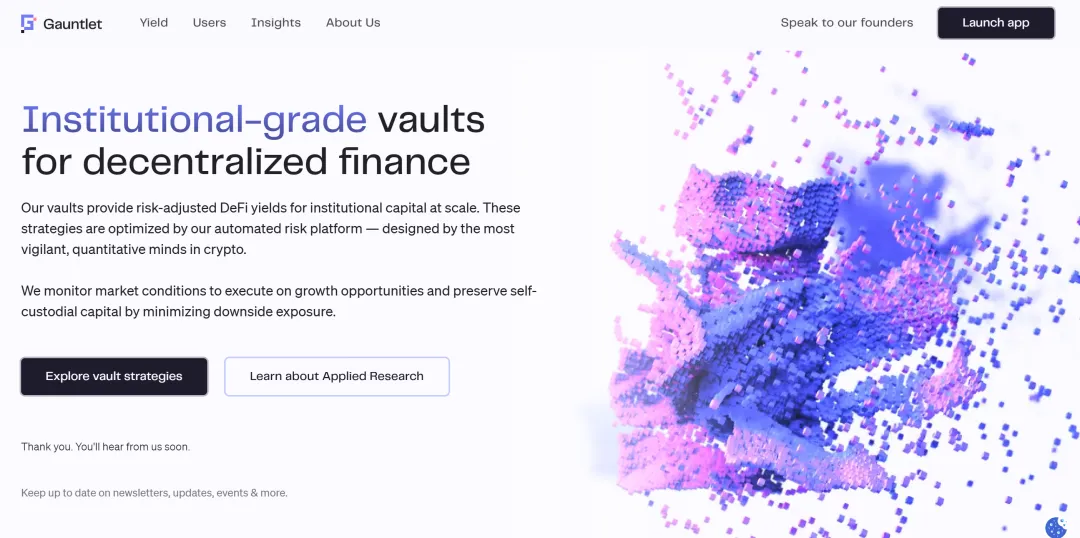 从一开始,我们就没有把 Gauntlet 定义为一家 “基金公司”。我们的目标,一直是成为收益和风险管理的基础设施层。如果你愿意把它理解成一句话,那就是:我们希望成为全球的 “收益 API”。无论你是哪种类型的用户,零售用户、鲸鱼用户、对冲基金,我们都能为你提供一个安全、可靠的产品,无论是人工智能代理还是其他任何东西。