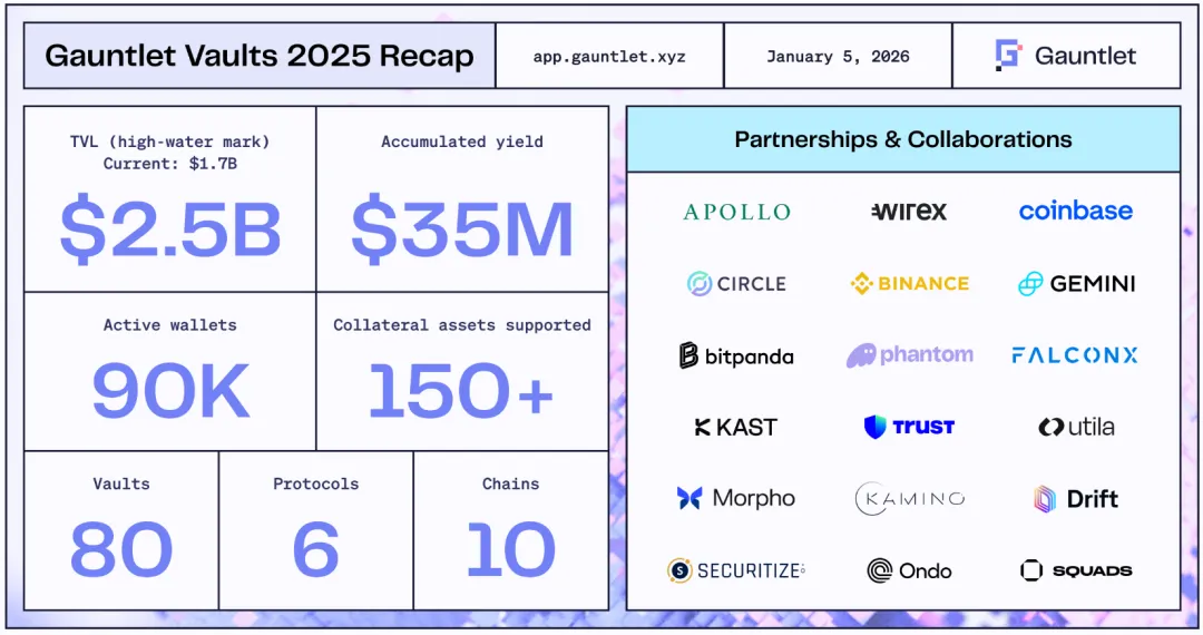 2025 年对 Gauntlet 来说是机构发展势头强劲的一年。该公司赢得了众多领先机构、金融科技公司和钱包的信任,这些合作伙伴都在寻求可靠的链上收益获取途径。通过广泛的合作伙伴关系,Gauntlet 的金库正在成为传统金融与链上机遇之间的桥梁。下面的合作路径都值得我们借鉴。