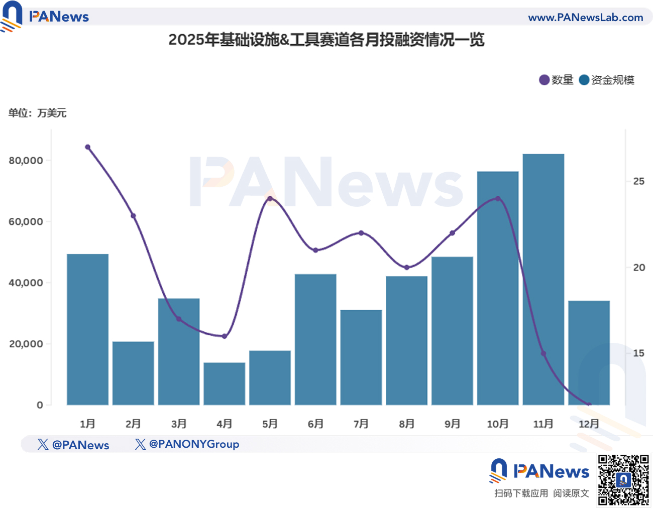 2025 年,基础设施与工具赛道累计公布了 243 起投融资事件,共筹集超 49 亿美元,平均融资金额约为 2030 万美元。
