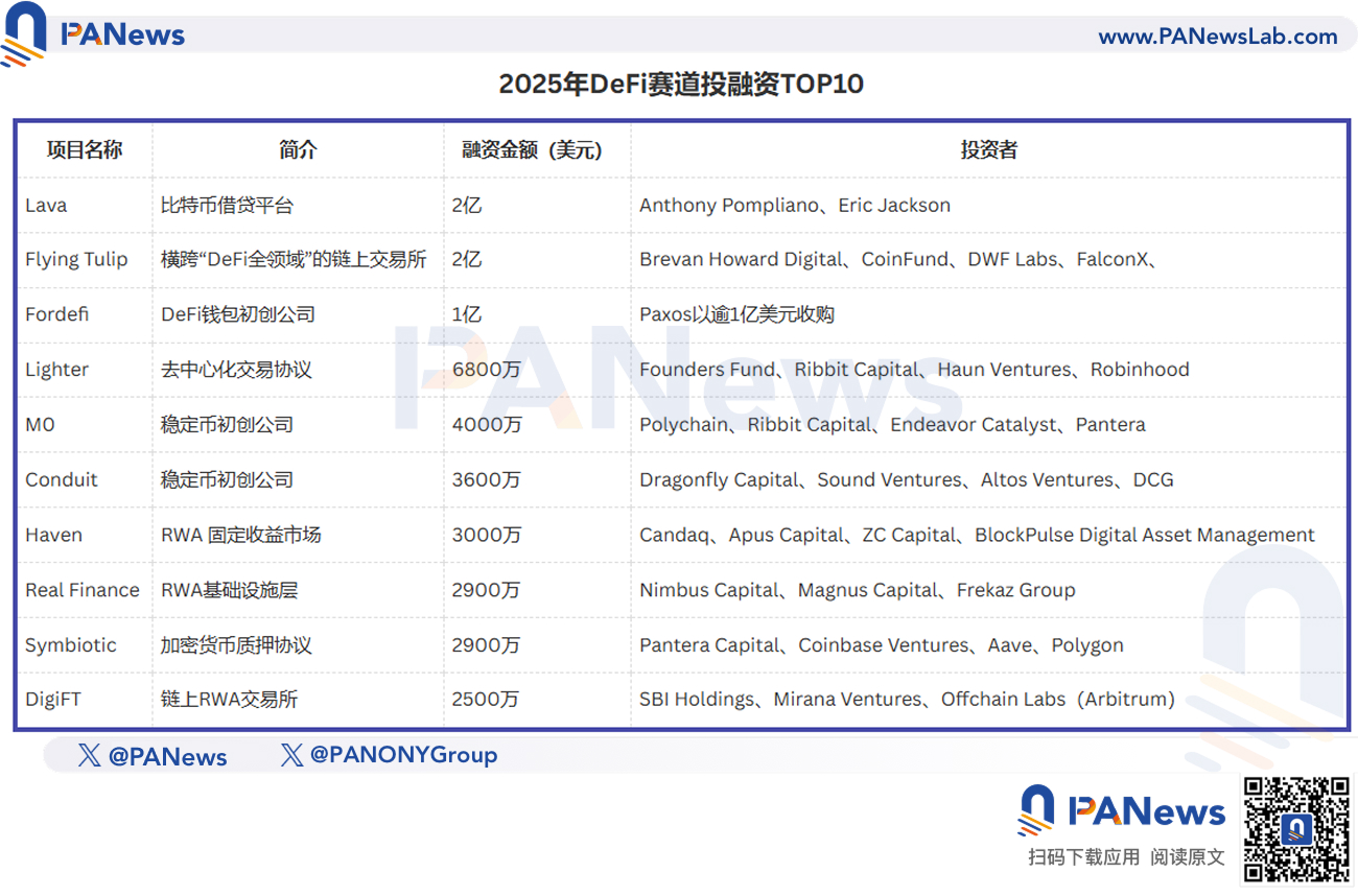 此外,DeFi 赛道在 2025 年的前十大融资及并购中,有三个都发生在 11 月:比特币借贷平台 Lava 筹集 2 亿美元新资金、Paxos 以超 1 亿美元收 DeFi 钱包初创公司 Fordefi,以及去中心化交易协议 Lighter 获得 6800 万美元融资。