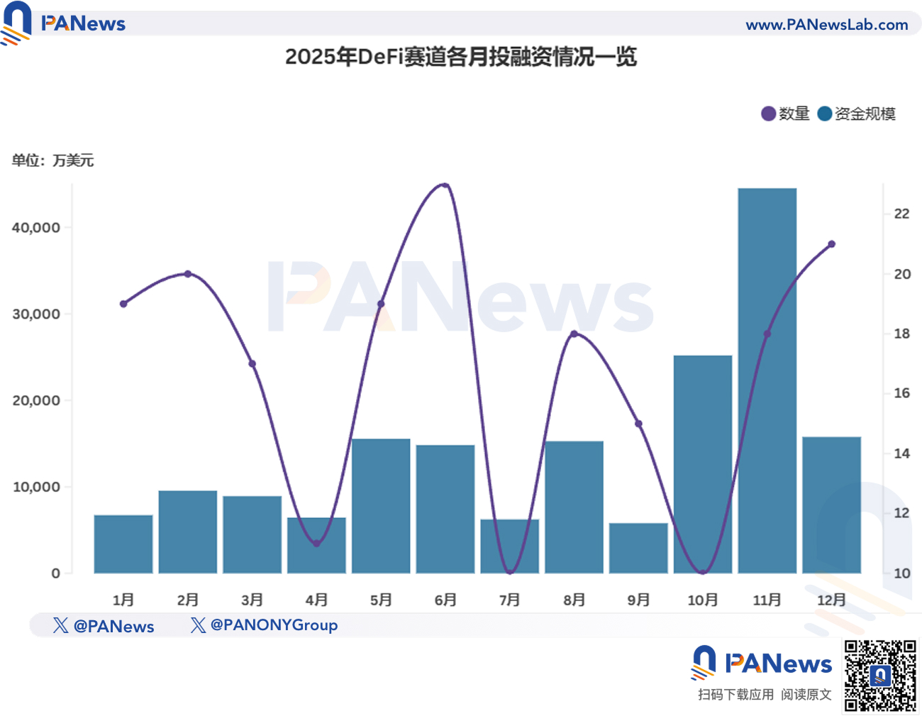 2025 年 11 月,虽然整体一级市场交易笔数来到最低点,但 DeFi 赛道却 “猛然抬头”,不仅项目融资数回升至 18 起,超过全年平均值 16,其流入资金更是创下去年最高记录,获得了超 4.45 亿美元。