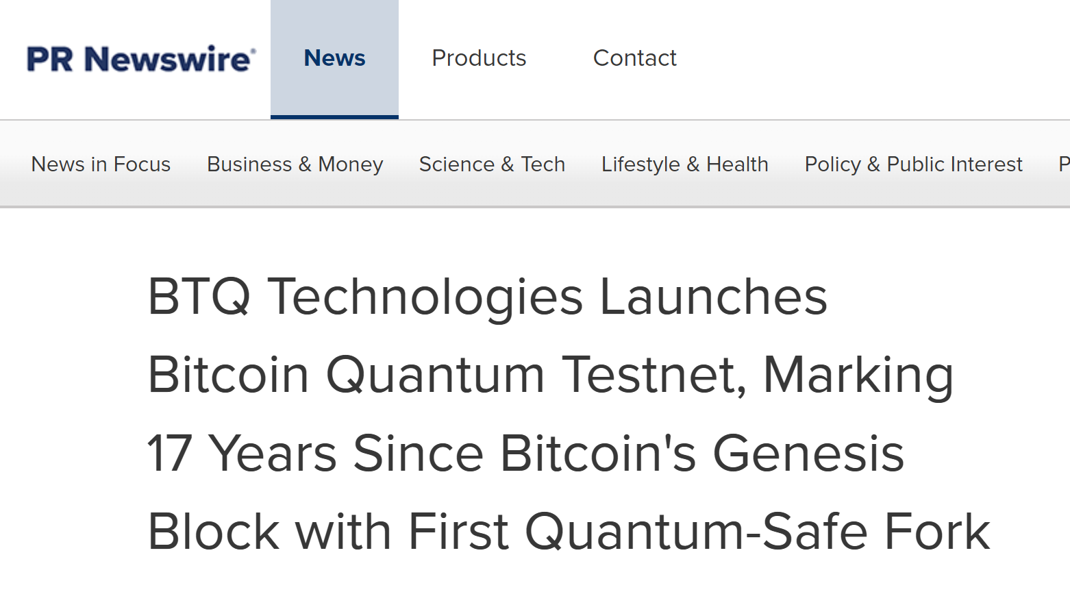 - BTQ Technologies 推出比特币量子测试网