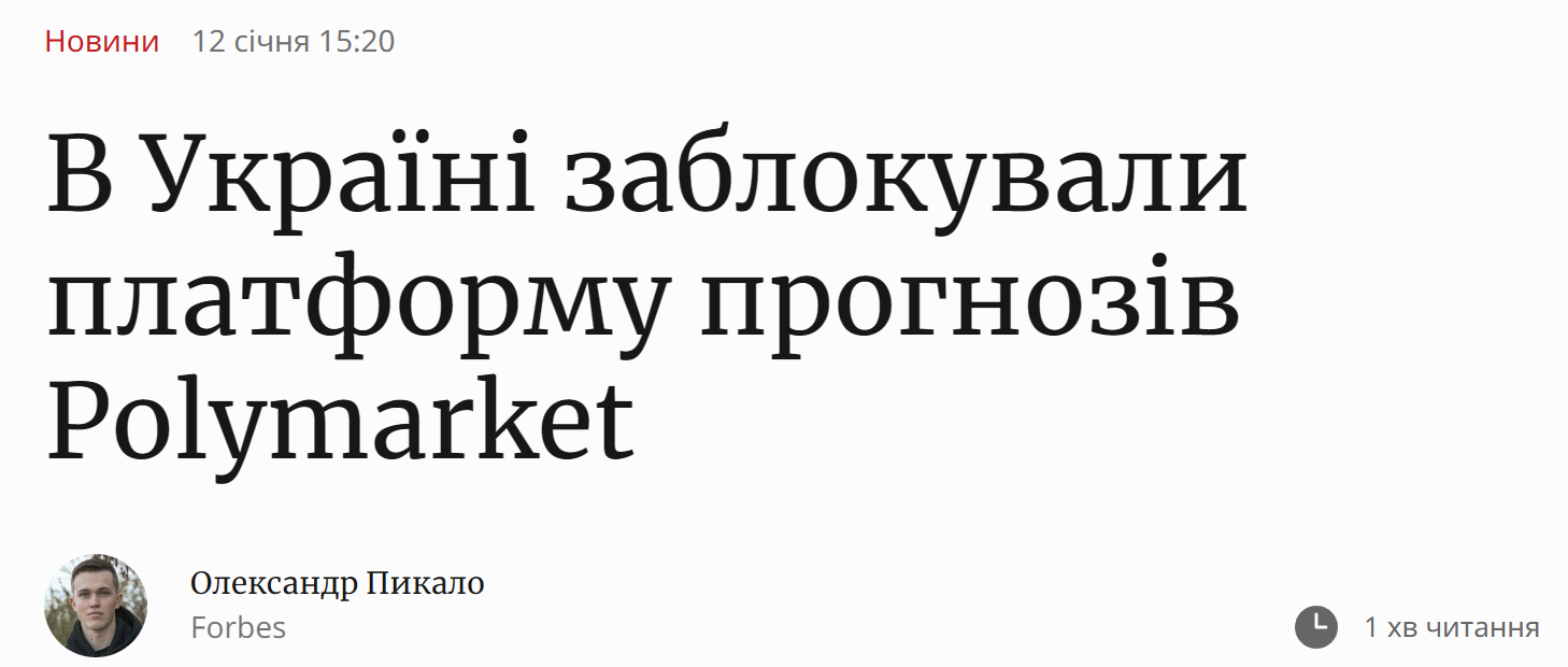- 乌克兰封禁预测市场平台 Polymarket
