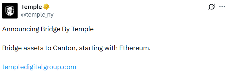- Temple 推出跨链桥