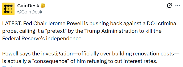 - 美联储主席鲍威尔抵制美国司法部刑事调查