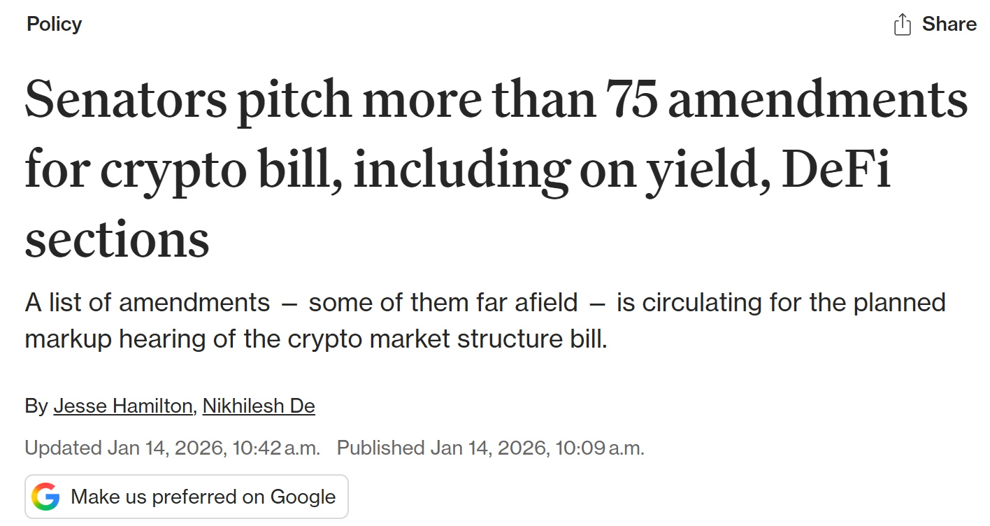 - 美参议员提出超 130 项加密货币法案修正案