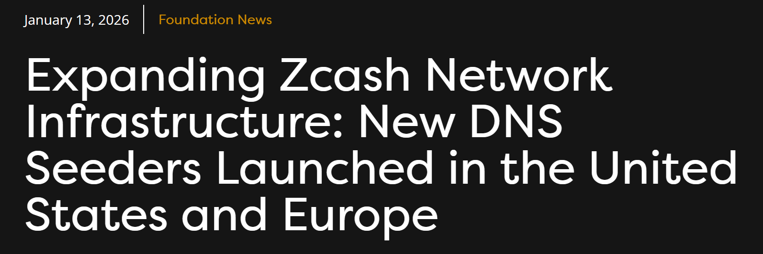 - Zcash 基金会部署 5 个 DNS 种子节点