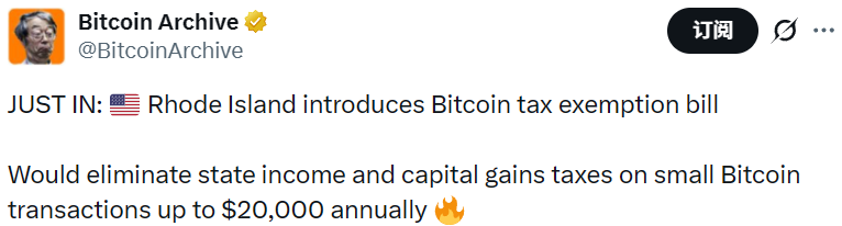 - 美国罗德岛州提出比特币税收豁免法案